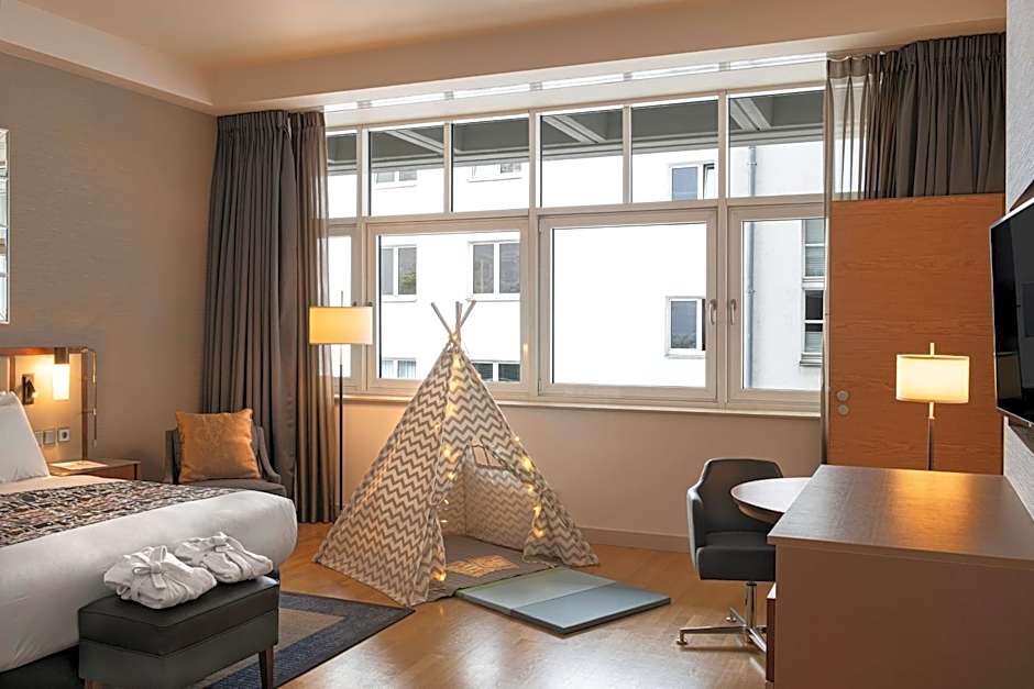 Deluxe King Family Connecting Room is 54 square feet and includes a king-size bed 150-183 width plus extra beds on demand, hairdryer, tea and coffee making facilities , and safe.