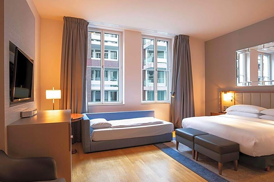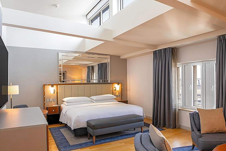 This stylish suite is located on the top floor. It includes skylight windows and a seating area with a sofa bed.